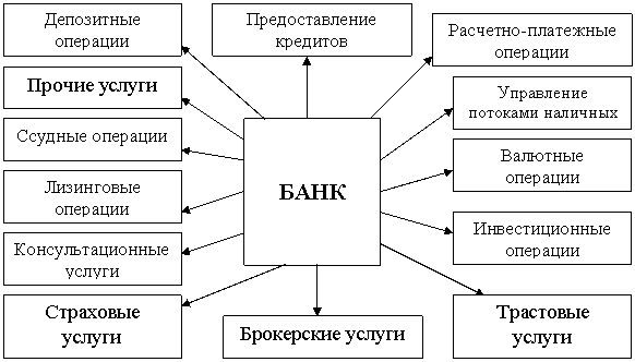 Развитие прочих операций способствует универсализации банковского дела, расширению услуг небанковского характера в структуре их операций, превращению банков в “финансовые универмаги”.
