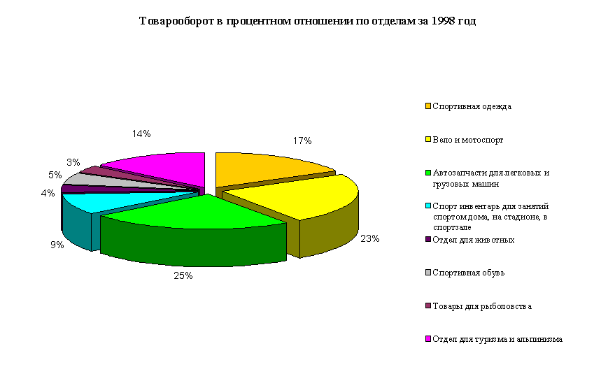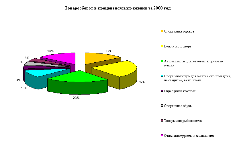 Розничный товарооборот ООО «Турист» по товарным группам за 1998-2000 г.г.