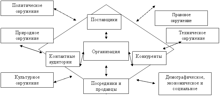 Внешняя среда включает все силы и организации, с которыми фирма сталкивается в своей повседневной и стратегической деятельности.