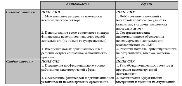 Таблица 5 – Стратегические альтернативы развития некоммерческих организаций, составляющих социальную сферу.