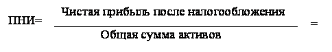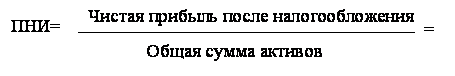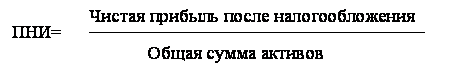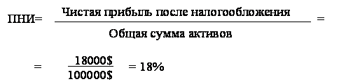 Прибыль на инвестиции, которая определяет взаимосвязь между чистой прибылью и инвестированным капиталом (общие активы), это критерий оценки эффективности использования руководством каждого доллара, инвестированного в активы компании. Увеличение ПНИ сказывается на увеличении прибыли на собственный акционерный капитал. ПНИ рассчитывается следующим образом: