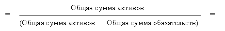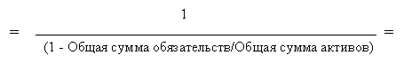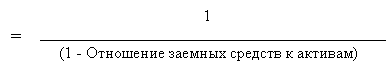 Один из вариантов формулы Дюпона, так называемая модифицированная формула Дюпона, показывает, как это осуществить на практике. Эта формула связывает вместе показатель ПНИ компании и степень ее финансового риска, то есть эффективность использования заемных средств. Финансовый риск измеряется мультипликатором акционерного капитала (отношением общей суммы активов компании к акционерному капиталу или, иначе говоря, отношением доллара активов к доллару акционерного капитала). Этот коэффициент, который рассчитывается делением общей суммы активов на акционерный капитал, даст показатель степени финансирования активов компании за счет акционерного капитала и заемных средств.