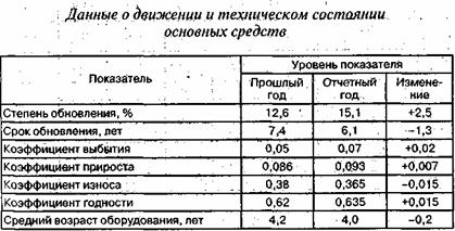 Данные табл. показывают, что за отчетный год техническое состояние основных средств на предприятии несколько улучшилось за счет более интенсивного их обновления.