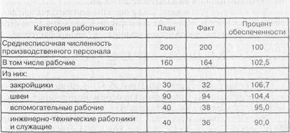 Обеспеченность предприятия трудовыми ресурсами определяется путем сравнения фактического количества работников по категориям и профессиям с плановой потребностью. Особое внимание уделяется анализу обеспеченности предприятия кадрами наиболее важных профессий.