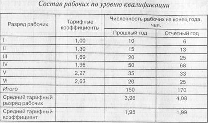 Судя по среднему тарифному разряду и среднему тарифному коэффициенту рабочих, рассчитанных по средневзвешенной арифметической, их квалификационный уровень за отчетный год несколько повысился.