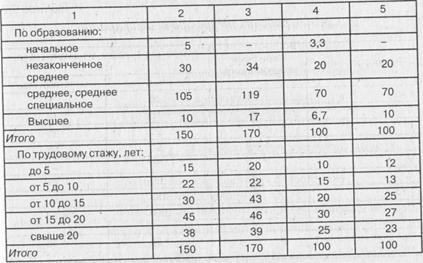 Квалификационный уровень работников во многом зависит от их возраста, стажа работы, образования и т.д. Поэтому в процессе анализа изучают изменения в составе рабочих по этим признакам.