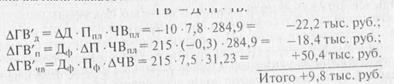 дГВуд = дУд –Дпл, -Ппл, -ЧВпл = (+0,02) -225 -7,8 -284,9 = + 10 тыс. руб.;