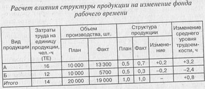Существенное влияние на средний уровень выработки оказывает изменение структуры продукции: при увеличении доли более трудоемкой продукции увеличиваются затраты труда на ее производство (табл. 2.8).