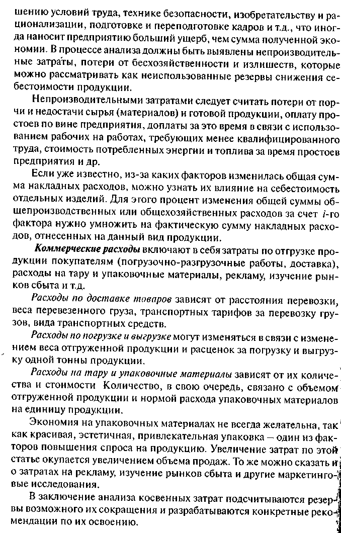 Косвенные затраты в себестоимости продукции представлены следующими комплексными статьями: расходы на содержание и эксплуатацию оборудования, общепроизводственные и общехозяйственные расходы, коммерческие расходы. Анализ этих расходов производится путем сравнения фактической их величины на рубль продукции в динамике за 5-10 лет, а также с плановым уровнем отчетного периода. Такое сопоставление показывает, как изменилась их доля в стоимости продукции в динамике и по сравнению с планом и какая наблюдается тенденция - роста или снижения.