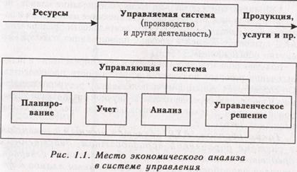 В настоящее время АХД занимает важное место среди экономических наук. Его рассматривают в качестве одной из функций управления производством. Место анализа в системе управления упрощенно можно отразить схемой.