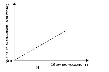 Совокупные переменные затраты имеют линейную зависимость от показателя деловой активности предприятия, а переменные затраты на единицу продукции — величина постоянная.