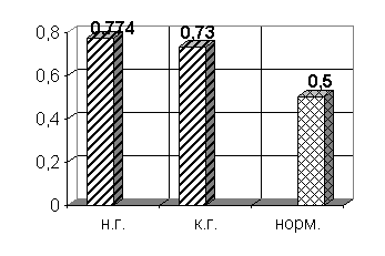 Коэффициент автономии снизился с 0,774 до 0,73. Не смотря на то, что коэффициент автономии соответствует нормальному ограничению (рис. 3.6), наблюдаемая тенденция свидетельствует о снижении финансовой независимости предприятия, повышении риска финансовых затруднений в будущих периодах. Такая ситуация, с точки зрения кредиторов, снижает гарантии повышения предприятием своих обязательств.