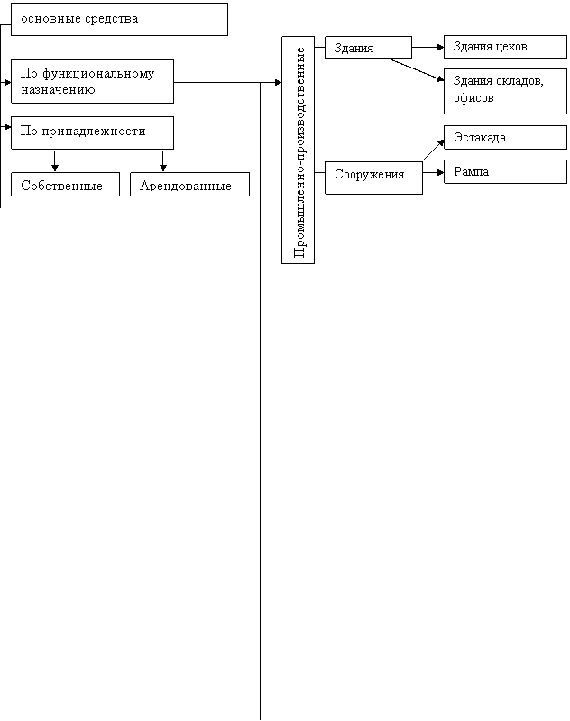 Большая часть основных средств находится в сфере производства. Она непосредственно связана с процессом производства продукции. Но наличие других видов хозяйственной деятельности (ведение подсобного сельского хозяйства, строительно-монтажных работ, наличие детских садов), которые находятся на балансе промышленных предприятий, принадлежат строительной отрасли, подсобного сельского хозяйства - сельскохозяйственной отрасли и так далее. В связи с этим в бухгалтерском учёте основные средства промышленных предприятий разделяются на промышленно-производственные, производственные основные средства других отраслей народного хозяйства и непроизводственные.