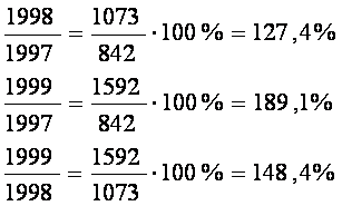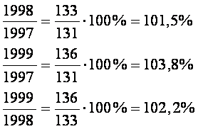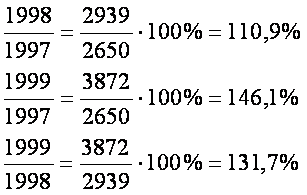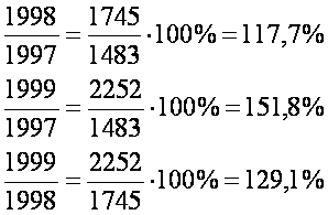 Численность за 9 месяцев 1998 г. в сравнении с таким же периодом 1997 г. увеличилась на 1,5 %. За этот же период 1999 г. в сравнении с 1997 г. на 3,8 %, в сравнении с 1998 г. на 2,2 %. Т.е. можно сделать вывод о том, что ежегодно, хоть и незначительно, численность увеличивается.