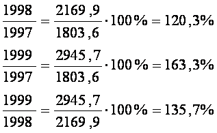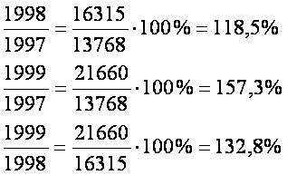 Средняя заработная плата за 9 месяцев 1998 г., по сравнению с 9 месяцами 1997 г. выросла на 18,5% или на 2547 руб., средняя заработная плата 9 месяцев 1999 г. в сравнении с этим же периодом 1997 г. выросла на 57,3%, т.е. на 7892 руб., а в сравнении с 1998 г. – на 32,8 % или на 5345 руб. Исходя из этого можно сделать вывод о том, что наблюдается рост средней заработной платы.