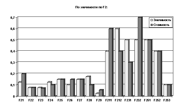 2) Для подгруппы F2 уменьшения затрат на разработку требуют функции F21, F26, F29, F211 и F232.