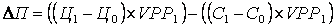 , где Ц0 и Ц1 - соответственно цена изделия до и после изменения качества; С0 и С1 - соответственно уровень себестоимости изделия до и после изменения качества; VВП1 - количество произведенной продукции повышенного качества; VРП1 - объем реализации продукции повышенного качества.
